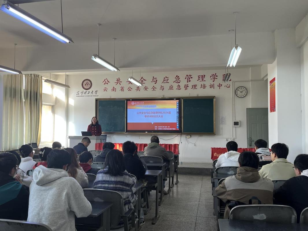 为激励考研学生坚定备考信心、鼓舞冲刺斗志,应急学院于12月12日在主楼410举办2026届考研冲刺动员会。学院党委副书记谷敏、辅导员刘申张、班主任王道航以及2026届考研学生共同参会。