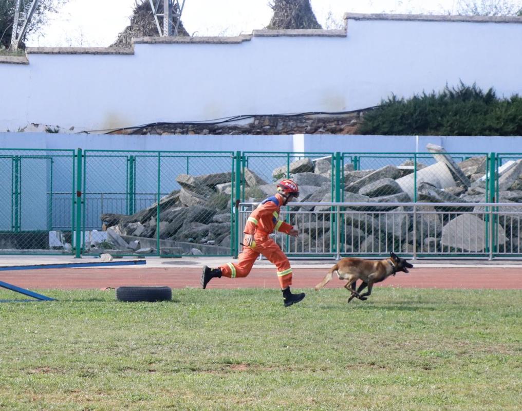 在支队引导员带领下,师生党员开启沉浸式研学。通过专业知识科普、服从科目训练观摩,实战技能展示等环节,全体党员师生深刻感受到,每一只搜救犬的成长都凝聚着训导员与犬只的无数心血。